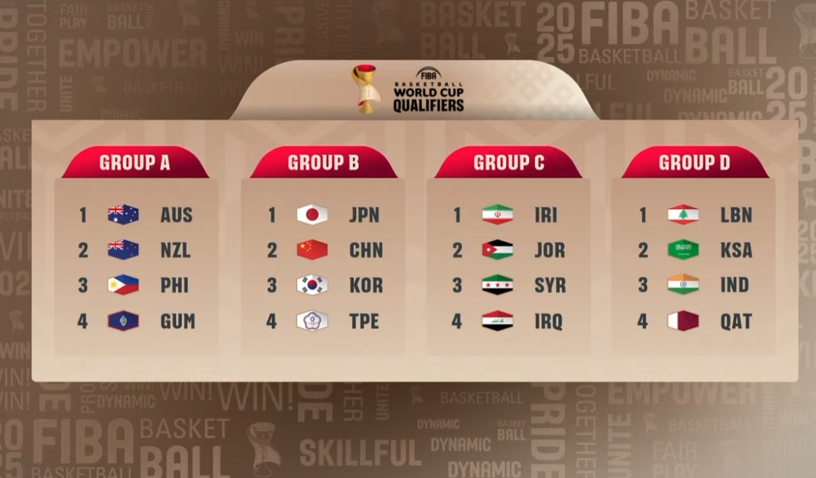24 Live Network 5月13日新闻今天在卡塔尔多哈举行了2027年男子篮球世界杯预选赛的抽奖仪式。中国男子篮球队在B组中最终确定,在同一组中对手:日本,韩国和中国台北!